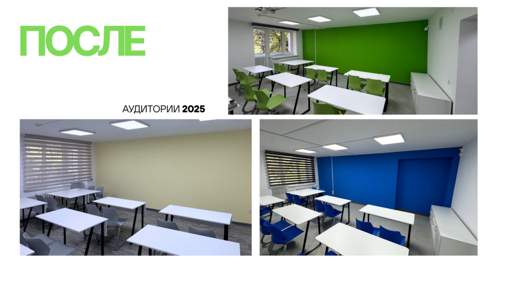 🔹 Современная мебель – новые парты, стулья и рабочие зоны для студентов и преподавателей.
